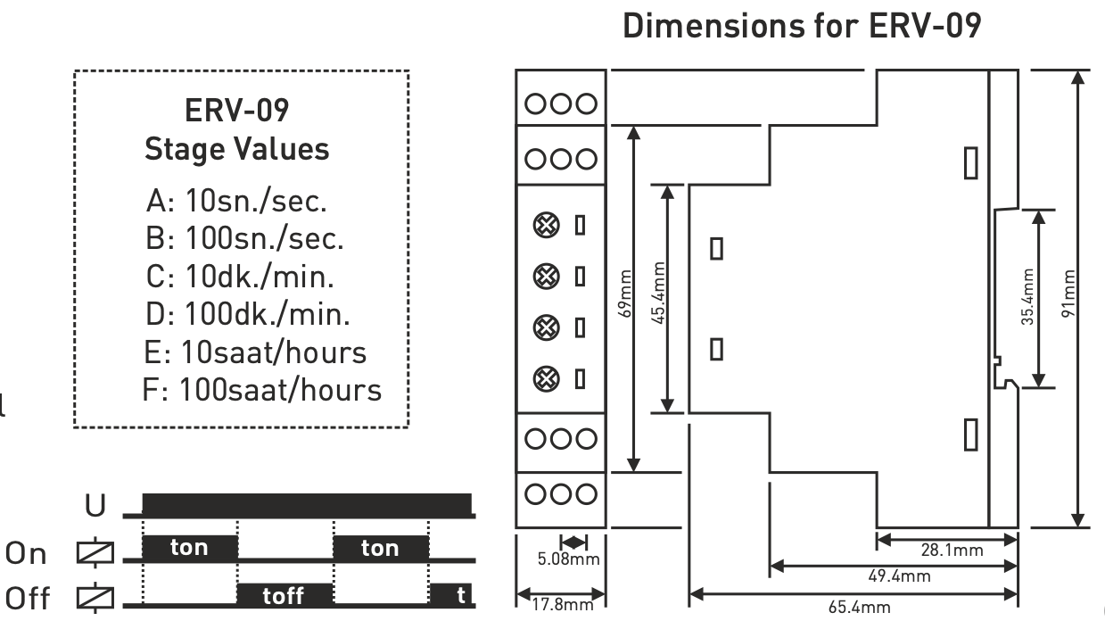 Vremenski relej - Bljeskalica na početku impulsa , Bljeskalica na početku pauze ciklički relej - simetrični / asimetrični ciklus