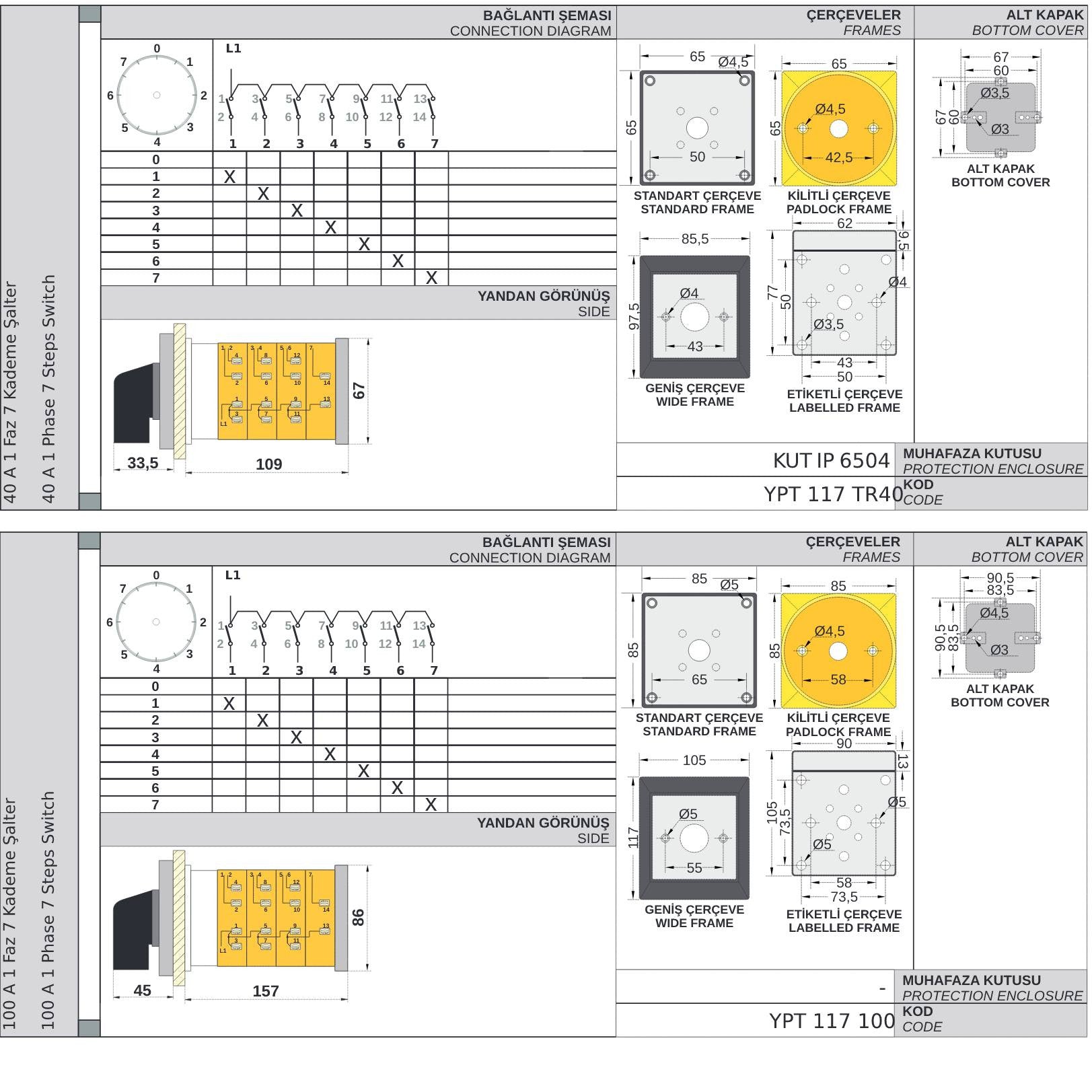 Koračni (stupnjeviti) prekidač 0-1-2-3-4-5-6-7, rotacijski prekidač , 1 pol, 10-160A, YPT117 proizvođač OPAŞ (Turska)