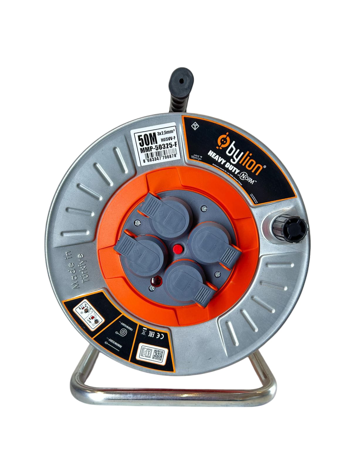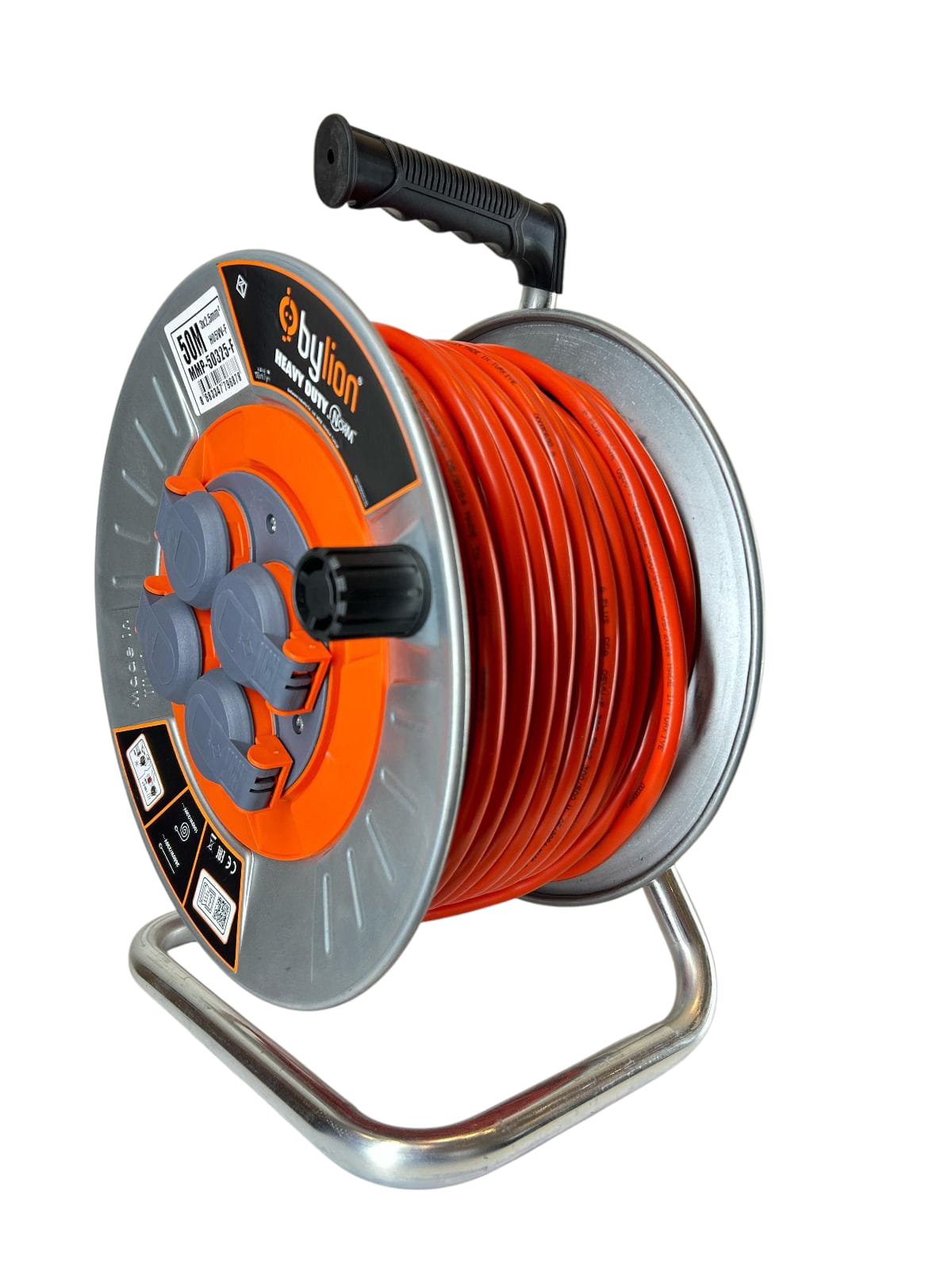 Metalni kolut za kabel IP44, francuski tip, 4x2P+E, metalni bubanj Hi-Impact, L= 50M, boja kabela: narančasta