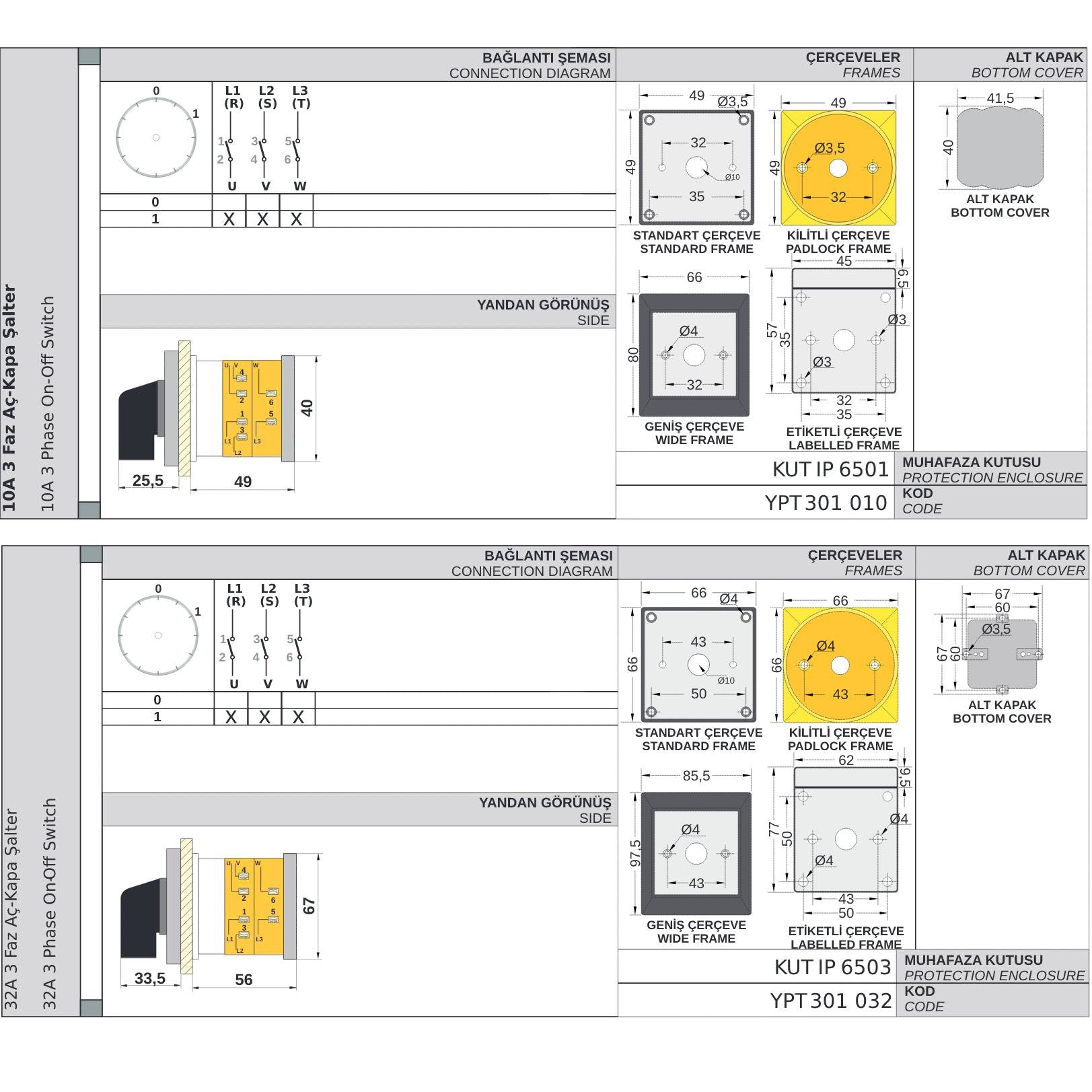 ON / OFF , ON-OFF / 0-1 bregasti paket za održavanje rotacijski prekidač za prednju montažu , zaključiv, YKL101 / YKL201 / YKL301 / YKL401, proizvođač OPAŞ (Turska)