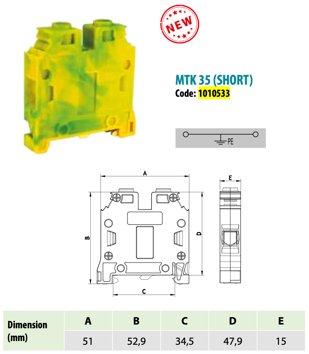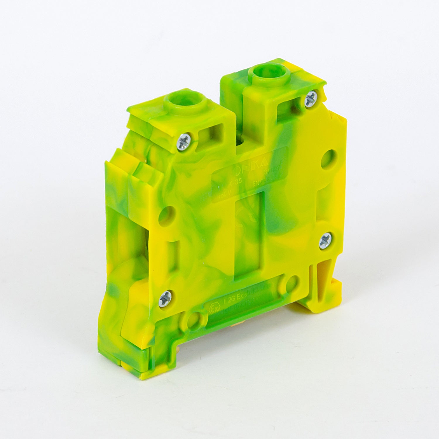 PE vijčana priključnica tračna spojka / terminal na DIN šinu 2-žilna zeleno-žuta, ONKA, proizvedeno u Turskoj