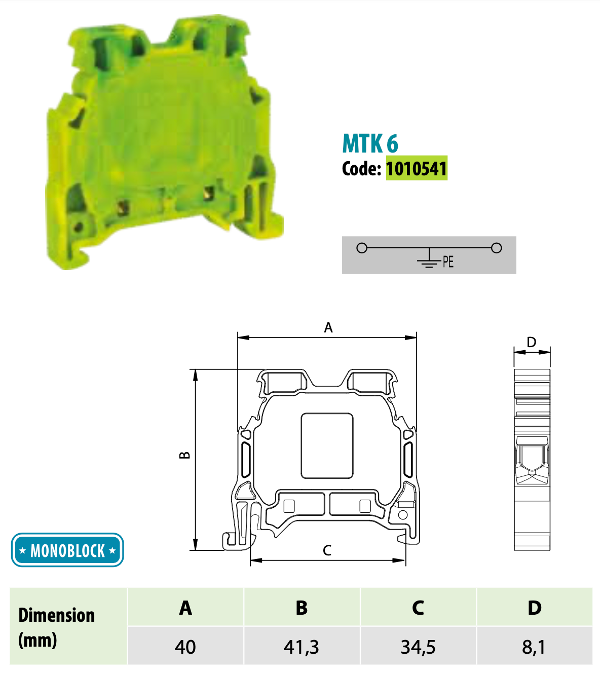 ONKA 6mm2 PE Vijčana kolejnica spojka stezaljka terminal na DIN tračnicu 2-žilna siva, 1010541