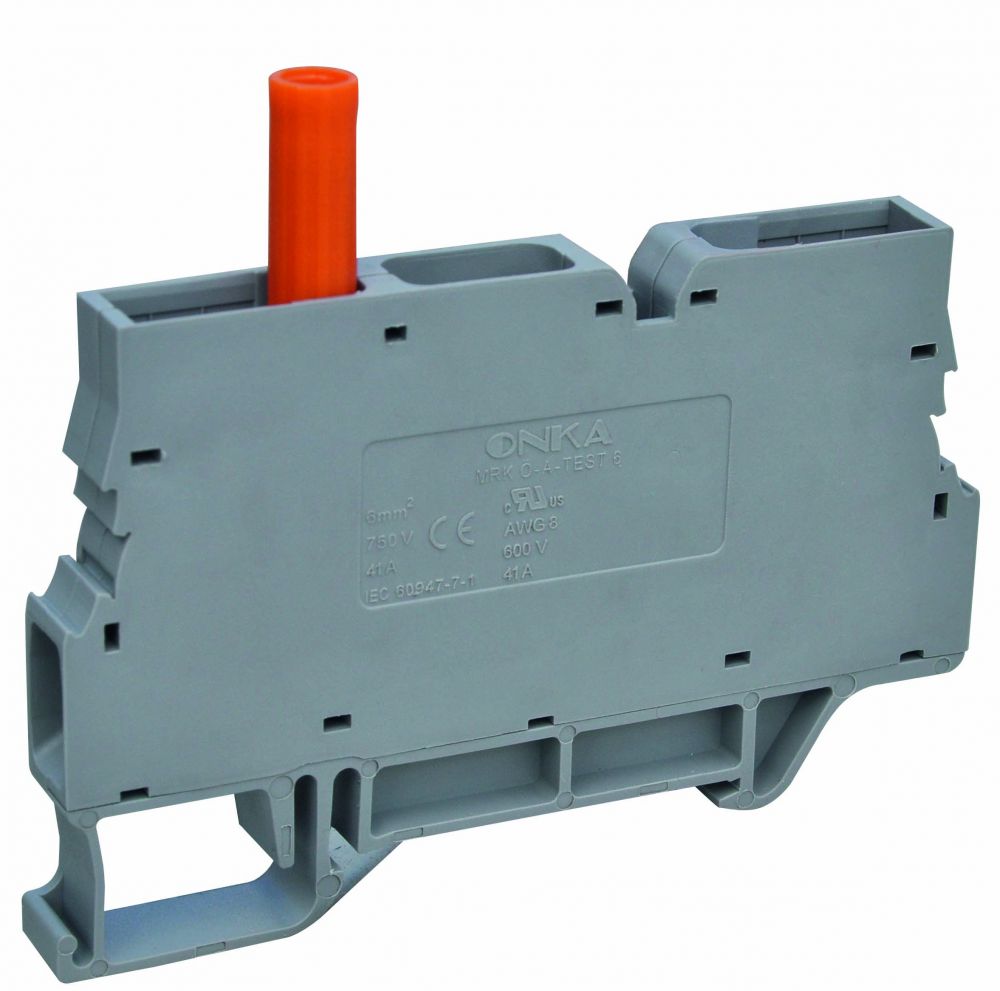 ONKA 6mm2 Vijčana šinska klemna spojka s testnim terminalom za DIN šinu 2-žična siva, 1010213