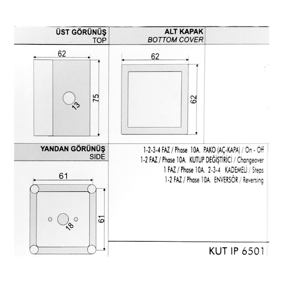 Plastična kutija IP65 za vačkovski prekidač, proizvođač OPAŞ (Turska)