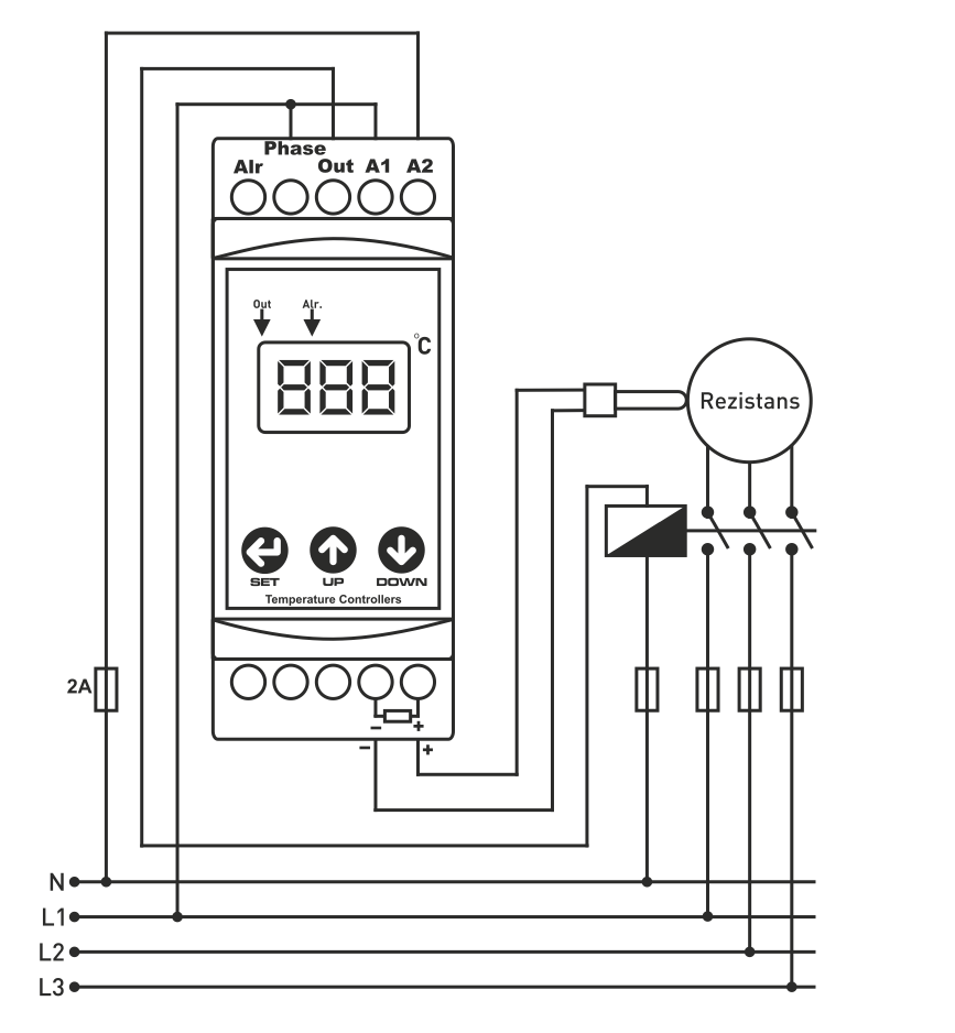 2-točkovni regulator / termostat temperature za montažu na šinu s vanjskim senzorom. ON-OFF UKLJUČI-ISKLJUČI način upravljanja, mjerni raspon -30ºC ...+150ºC (proizvedeno u Turskoj, TENSE) DT-321DIN